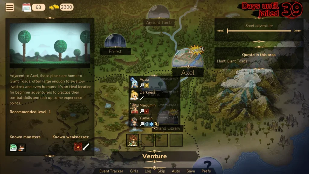 So, what is Adventurer Trainer, exactly? At its heart, it’s a love letter to the chaos of Konosuba, masterfully crafted by PastryIRL itch.io into a free, non-commercial game that blends visual novel storytelling with light RPG mechanics and a generous helping of adult content. You step into a beautifully twisted version of Axel, guiding a customizable protagonist through a life of adventure, romance, and absolute comedic misfortune. It’s the kind of game where you might be strategizing for a boss fight one minute and trying to survive a goddess’s terrible party planning the next.