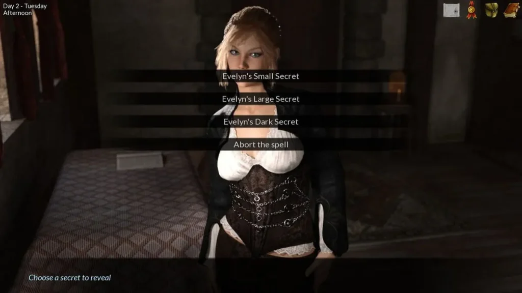 To cast spells that will influence people, reveal hidden truths, or protect yourself, you need leverage. This means talking to the various townsfolk, especially the women, and using your lie detection to uncover their hidden shames, desires, and fears. Once you know a secret, you can use it as fuel for magic. It’s a morally grey, utterly compelling gameplay loop. You’re not just a passive hero; you’re an active manipulator, piecing together personal tragedies to build the power needed to stop a larger one.